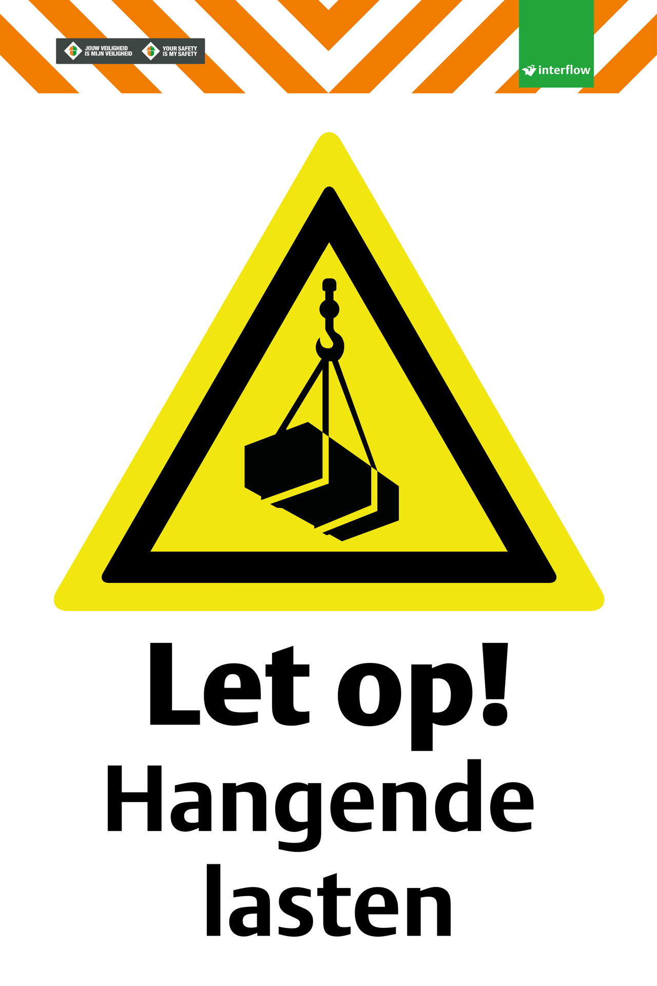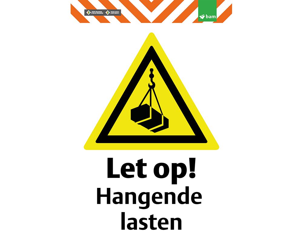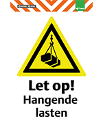 Geen doorgang tijdens kraanbeweging. Markering gevaar vallende lasten rondom hijsgebied.