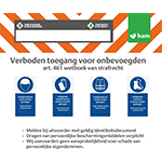Markering toegangswegen volgens format met juiste geboden, verboden en waarschuwingen.