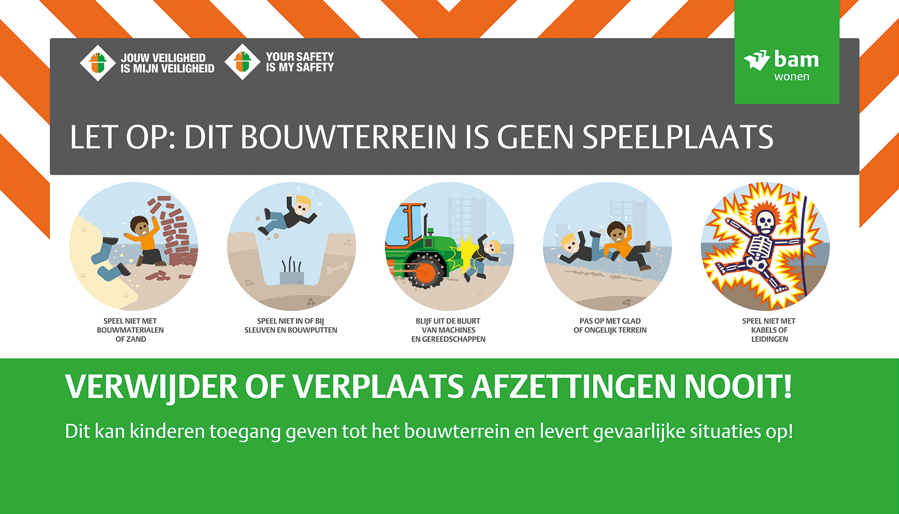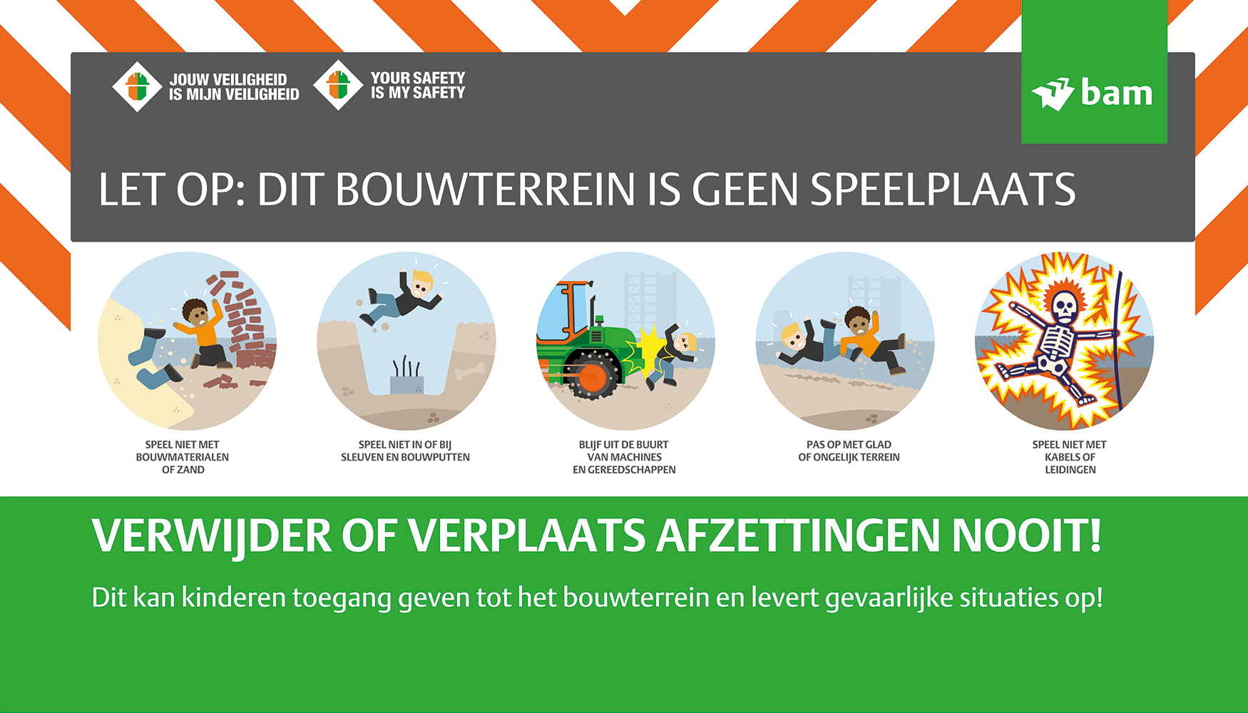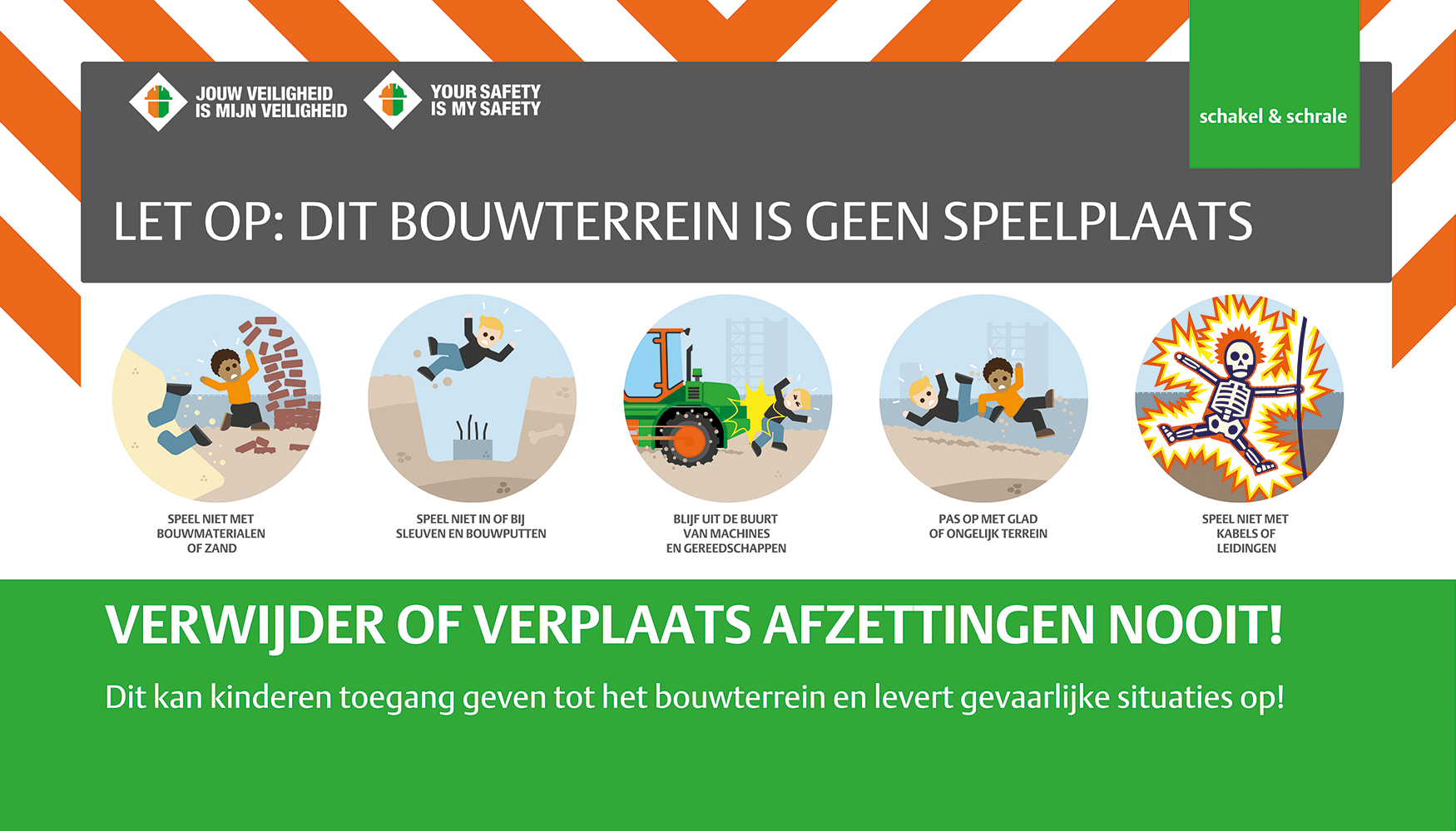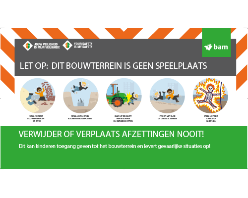 Hekwerkbanner : bouwplaats is geen speelplaats.
