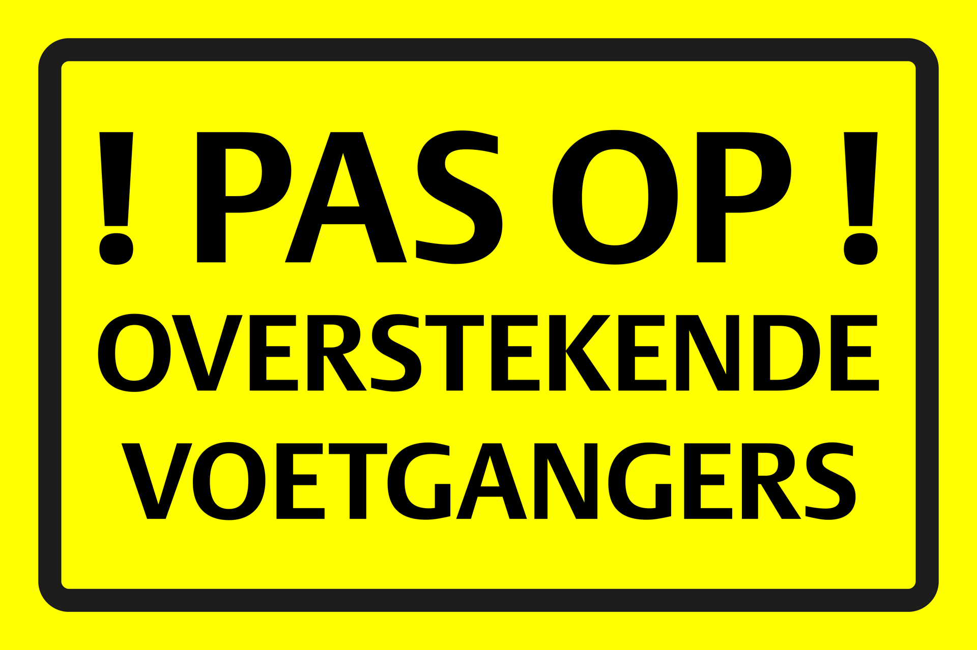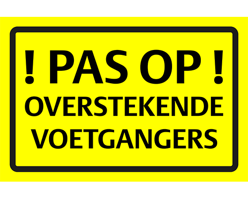 Waarschuwingsborden voetgangers en bouwverkeer.