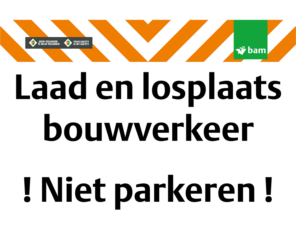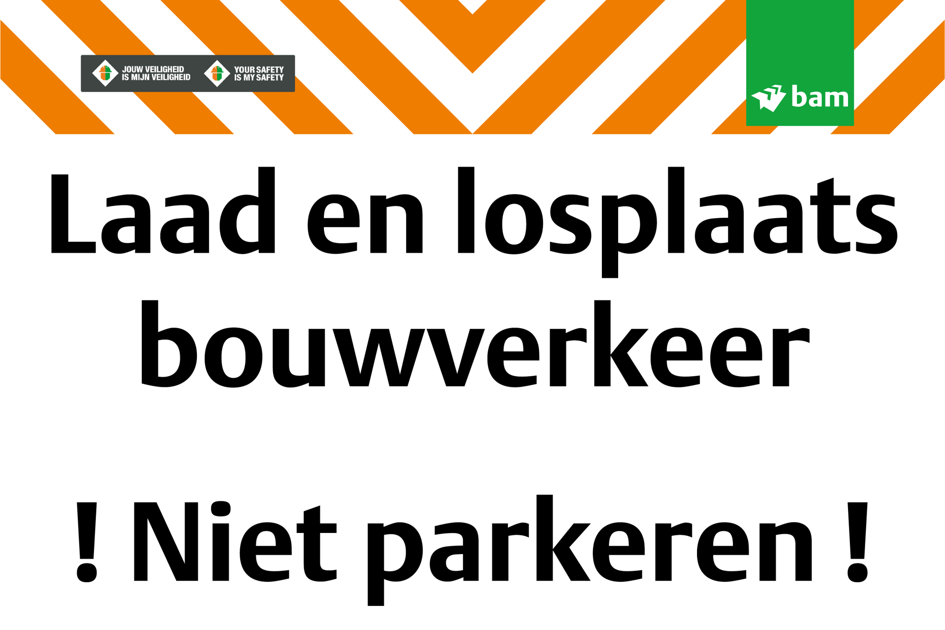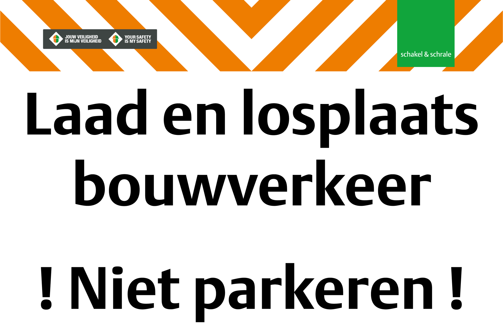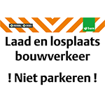 Markering locatie laden en lossen door middel van bord “Laad en losplaats bouwverkeer”.