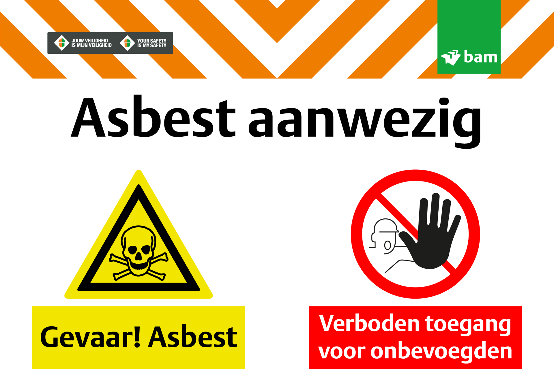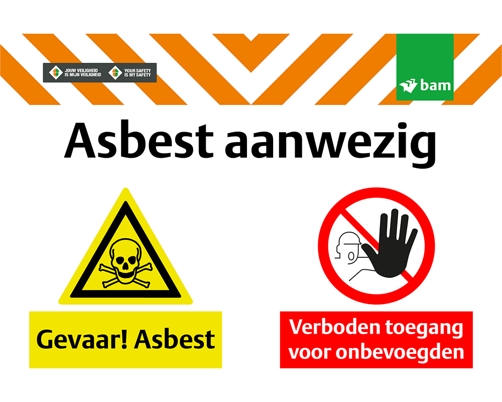 Markering locatie asbest d.m.v. afzetting en waarschuwingsborden.